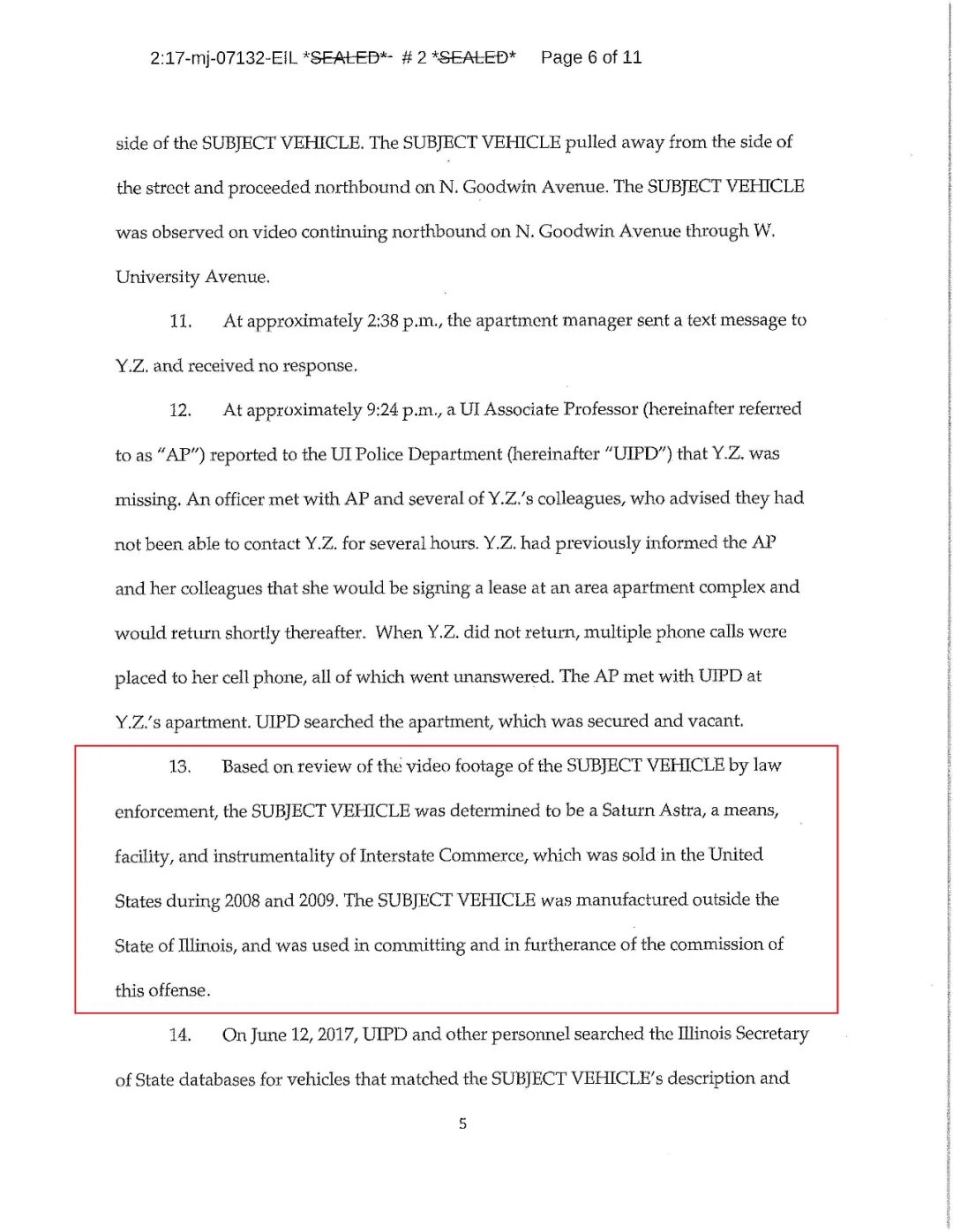 在章莹颖案中,为了能在联邦法院起诉克里斯滕森,政府可谓脑洞大开。在起诉书所附的FBI探员宣誓证词(Affidavit)的第13条说明了案件属于联邦管辖的理由,是因为克里斯滕森用于绑架的的土星牌小轿车是设计来用于跨州运输的,而且是在伊利诺伊州之外生产的,所以这个犯罪行为涉及了跨州因素,因此联邦法院有管辖权。是不是有点牵强?但只要能踩上“跨州”这个点就够了。这也是为什么起诉的是绑架罪而不是谋杀罪,估计克里斯滕森的谋杀行为实在和“跨州”没关系。