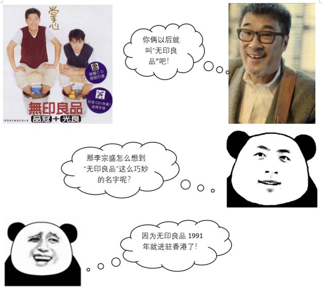 1995年李宗盛去马来西亚挑选新的歌手,相中了这两个人,因为两人清新自然的风格,而且名字里面有“良”和“品”,李宗盛就把他们叫“无印良品”了。